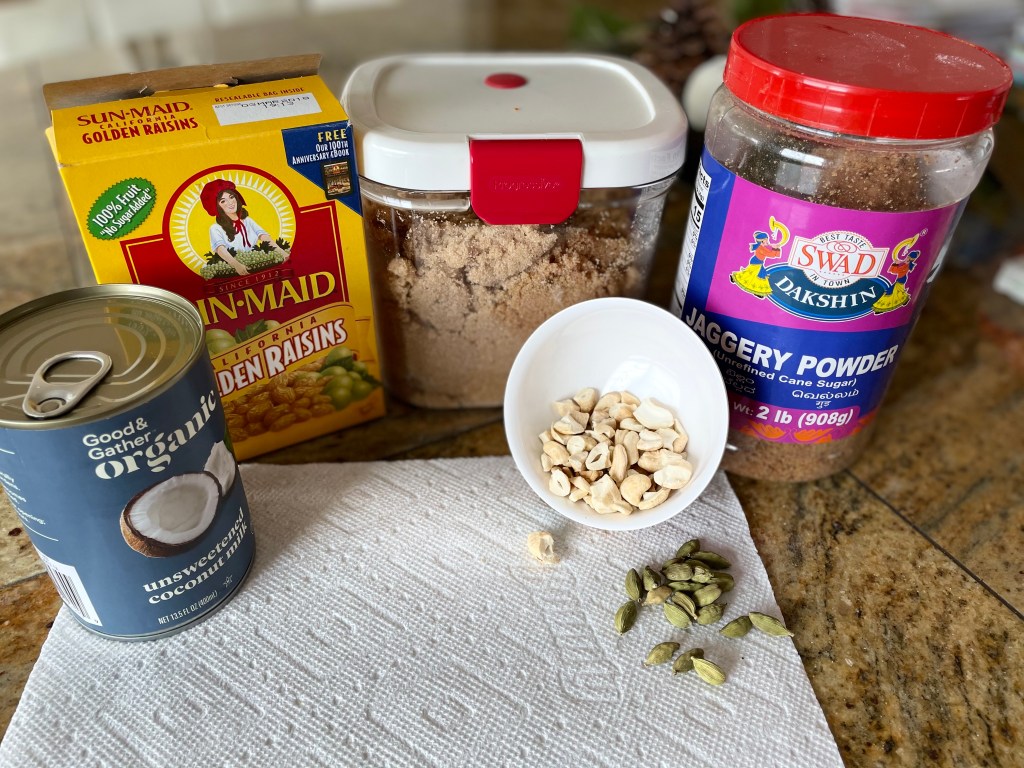 - 1 cup light brown sugar or powered Jaggery (Indian cane sugar)