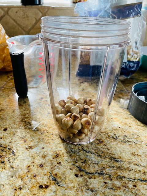 - 1/2 cup roasted skinned hazelnuts