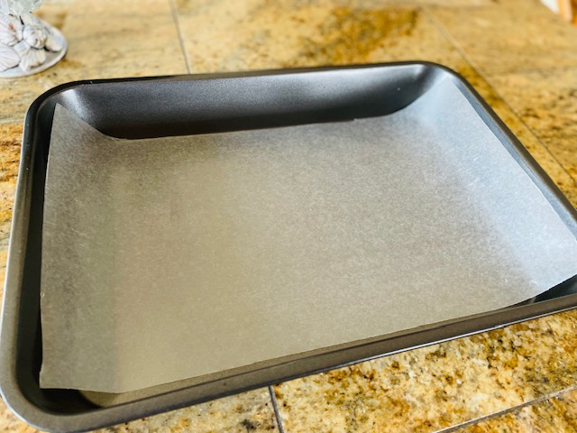 - Then place the baking paper sheet side down, on a baking tray.