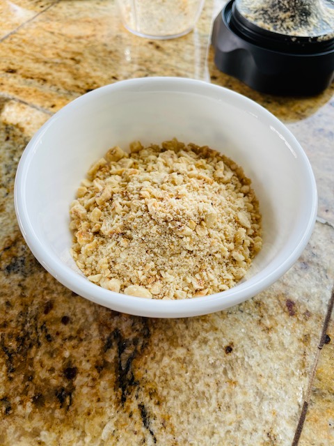 4. Put the roasted and skinned hazelnuts in a food processor and blend them until the nuts are coarsely ground.