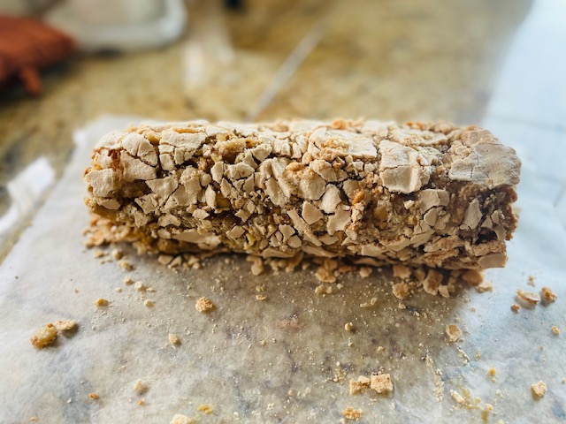 6. Be very gentle when you roll the meringue. The cheese filling will eventually bind. Do you see the crackle formed on the pastry? 😊