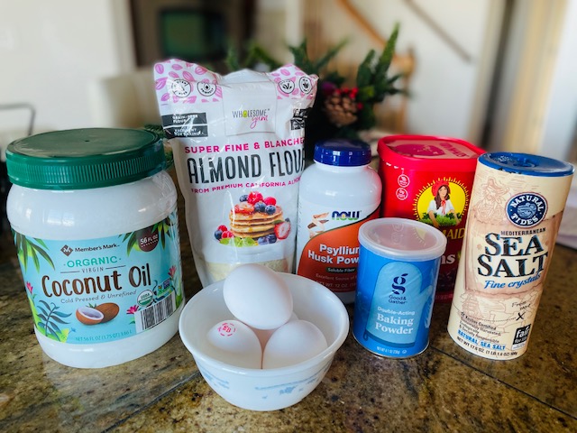 - In a large bowl, stir together the almond flour, Psyllium husk powder, baking powder, and sea salt.