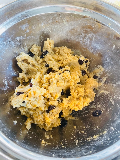 - Add raisins to the dough. Mix it well until you see air bubbles.