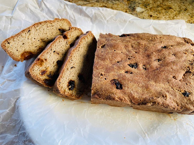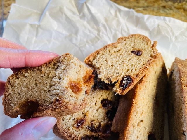 Here is my gluten-free raisin bread. Loved the texture, sliced it to perfection and tasted delicious – moist and super soft. 😍