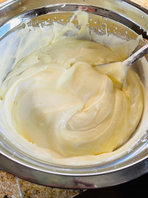 5. Keep the Mascarpone cheese at room temperature for 20-30 minutes before you are ready to use it. Then add it to the whipped yolks, mixing until it combines well. Don’t over mix since it can cause curdling.
