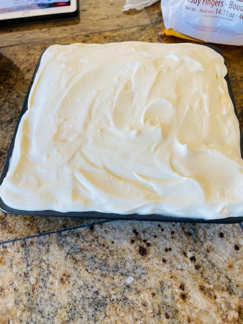 5. Repeat process with another layer of ladyfingers and add another layer of tiramisu cream.