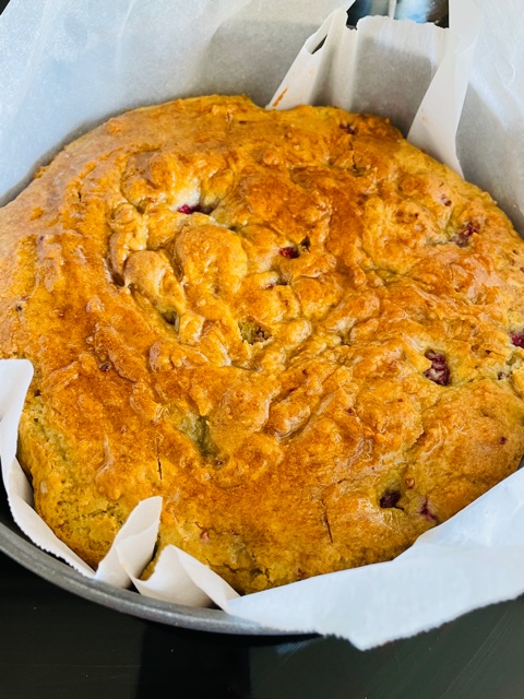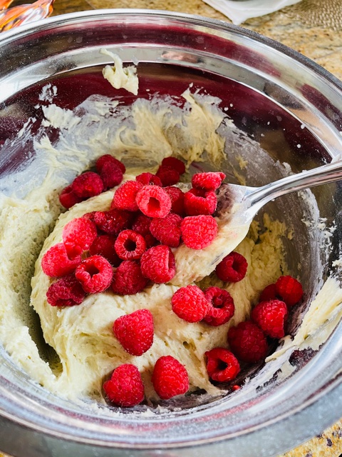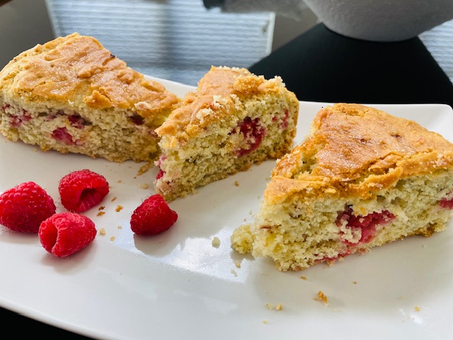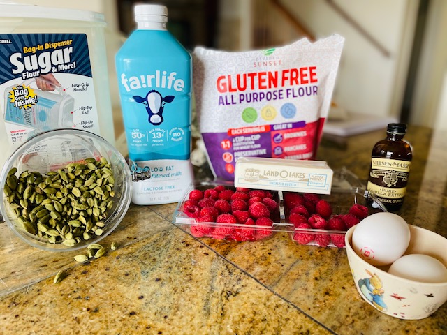 I love fresh raspberries. The delicate sweetness and the subtle texture of this cute berry are exclusive. By adding cardamom, a complex spice, created a luscious sweet aroma that filled my entire house. Honey was my way to bring one more natural sweet flavor to this treat. I think we got it all covered – gluten-free, fresh fruit and spice, and natural sweetness. You are very welcome!