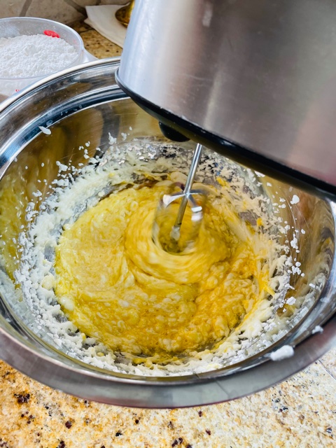 5. Add the dry mix into the egg mixture and mix well. Do not over-mix.