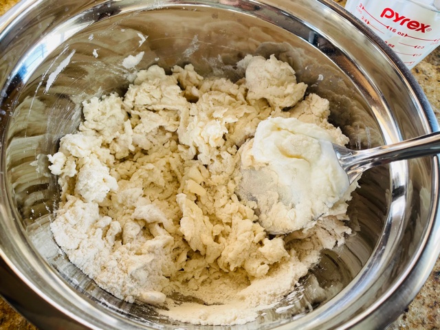 Add the yogurt and mix it until well combined, it will look like small crumbles.
