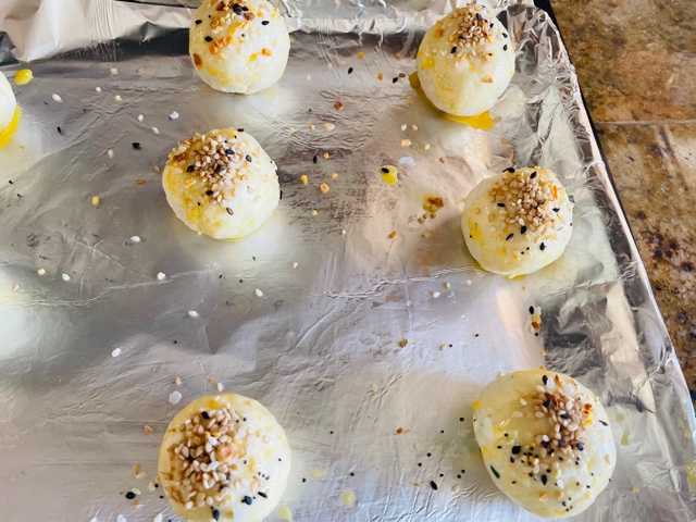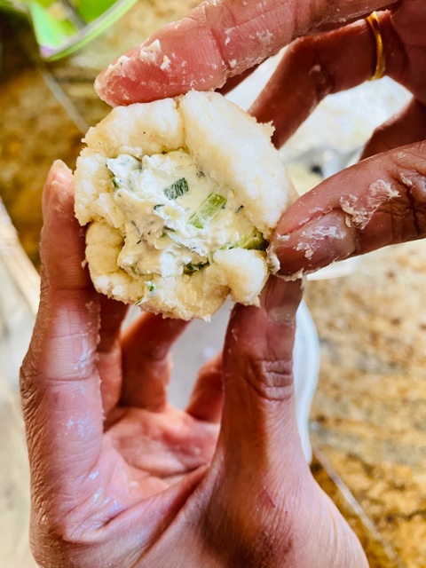 In the meantime, make the cream cheese filling. Please follow the recipe in my earlier blog post Everything Bagel Bites.